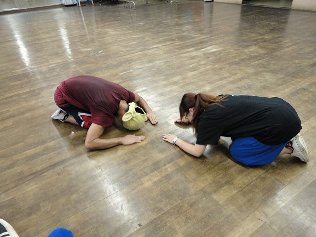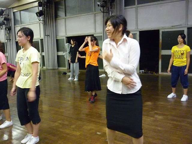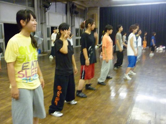 さぁ、今回は夏休み中に行われた(汗 ゆっけさんによるJazz Lessonの様子をアップ! こちらが4年ゆっけさん☆(キラキラ 舞踊場日記用に キメていただきましたヾ(@°▽°@)ノわーい さて、これから何が始まるのでしょうか。 筋 ト レ ! (予 想 外 っ みんな『うーっ・・・』ってかんじで 腹筋しています。 よーく見るとピースしてる人とかいたりww ゆっけさんによる アムロちゃんワールドのスタートです♪ (↑文字列を検索したかったのですが、 以前のHPが消えてました・・・ かんけさーん!ゆりぽさーん!! <カッカッ って 聞こえてきそうな足の動きですね。 右の見切れみっくん(1男)も 後ろの4女さんたちに負けじと動きます! この日も1女がいっぱい参加! 足元がキレイ(・∀・)うん あ、一女もっと見たいですか? こちら左から、 しおりと振りまわされるさぁぽん(笑 かわいーなーおまいら♪ <きゃっ! っとセクシー?に? キメる いchってちがうちがう(汗 3年ひーこさん。 実習中だったようで、スーツで踊ってました。 もうひとかた、実習帰りのすっちゃんさん。 レッスン中、スタミナが切れたようで みんなが踊っている隅でこんな状態に・・・ おつかれさまです(^ ^ この日は4女さんが 横一列に並んで踊っていました。 なんかおもしろい構成ですよねo(^-^)o